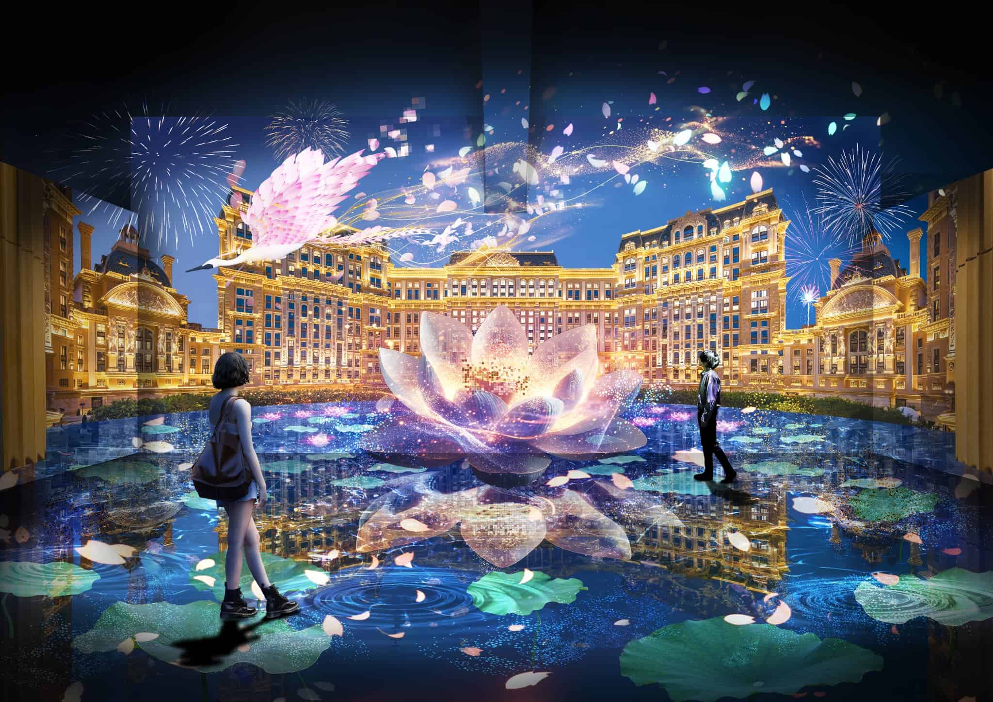 本展のコンセプトは「都会の中で出会う、様々な秘密のガーデン」。マカオ返還25周年を記念し、マカオの国花「ハス」をモチーフに、オブジェ、映像、インタラクティブ、香り、音楽など、多彩なアート作品を展示。四季を感じる没入型アート体験を楽しめます。
