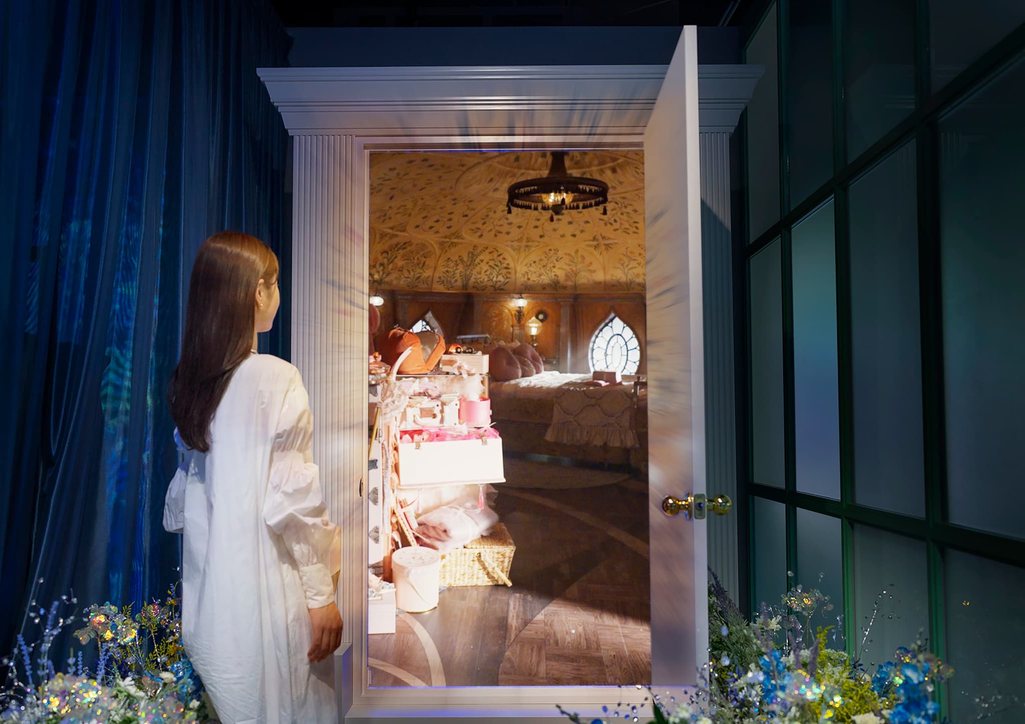 会場では、特別な「魔法の鍵」となる二次元コード付きのカードを手に、映画『ウィキッド ふたりの魔女』の世界へ旅立つ仕掛けを用意。映画内の招待状をモチーフにデザインされたカードをかざすことで、会場内で物語に関する演出が楽しめます。