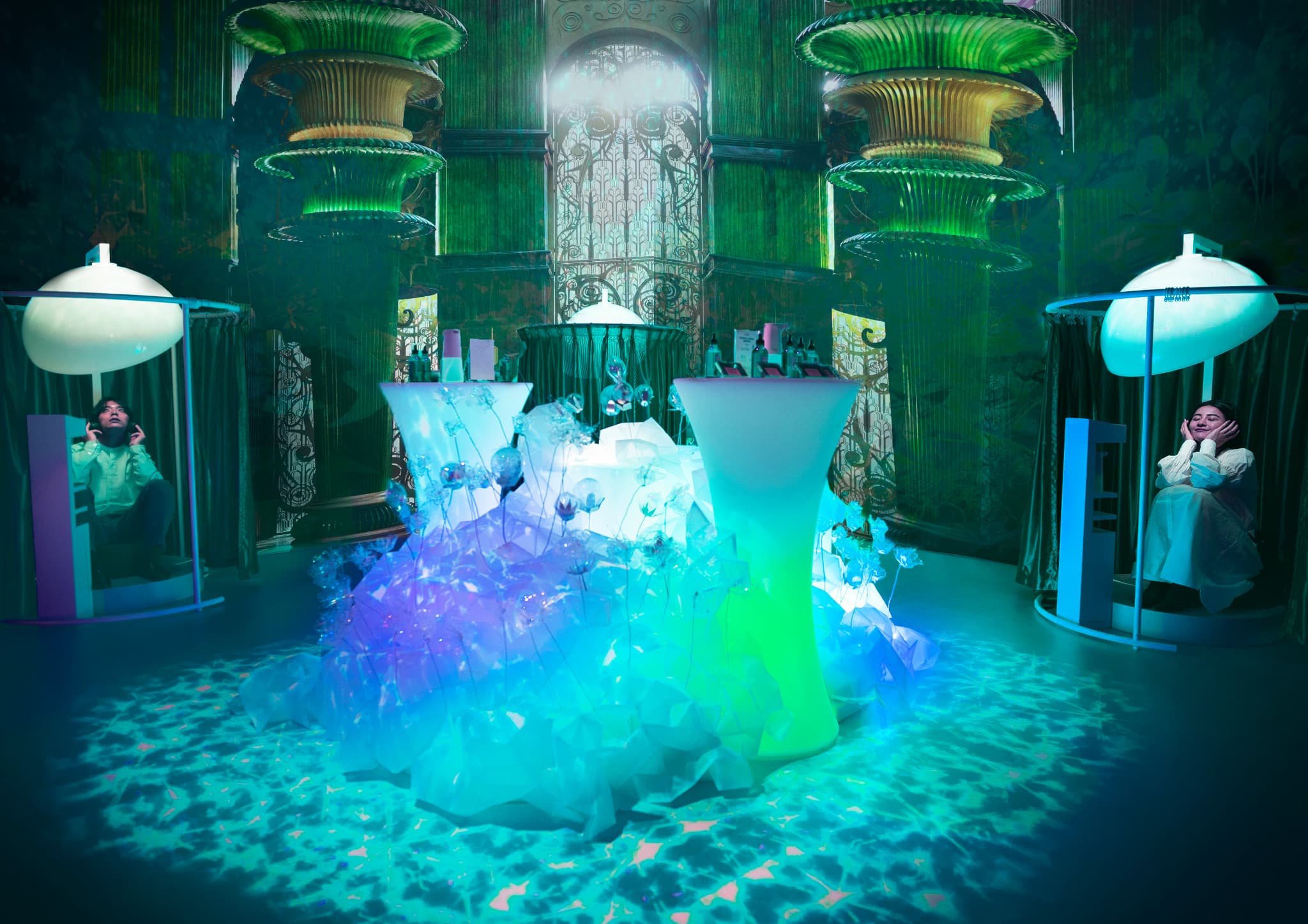 映画の象徴的なシーンが映し出される『NAKED BIG BOOK』や、物語の舞台であるエメラルドシティを表現し、本会場でしか見ることができない本編映像と共に映画内の魅力的な楽曲を楽しむことが出来る『EMERALD CITY HARMONY』、エルファバとグリンダを象徴するグリーンとピンクの花々が咲き誇るインタラクティブエリア『桜彩 OUSAI -GREEN & PINK GLOW-』など、映画『ウィキッド ふたりの魔女』の世界観を体験できるコンテンツが充実しています。