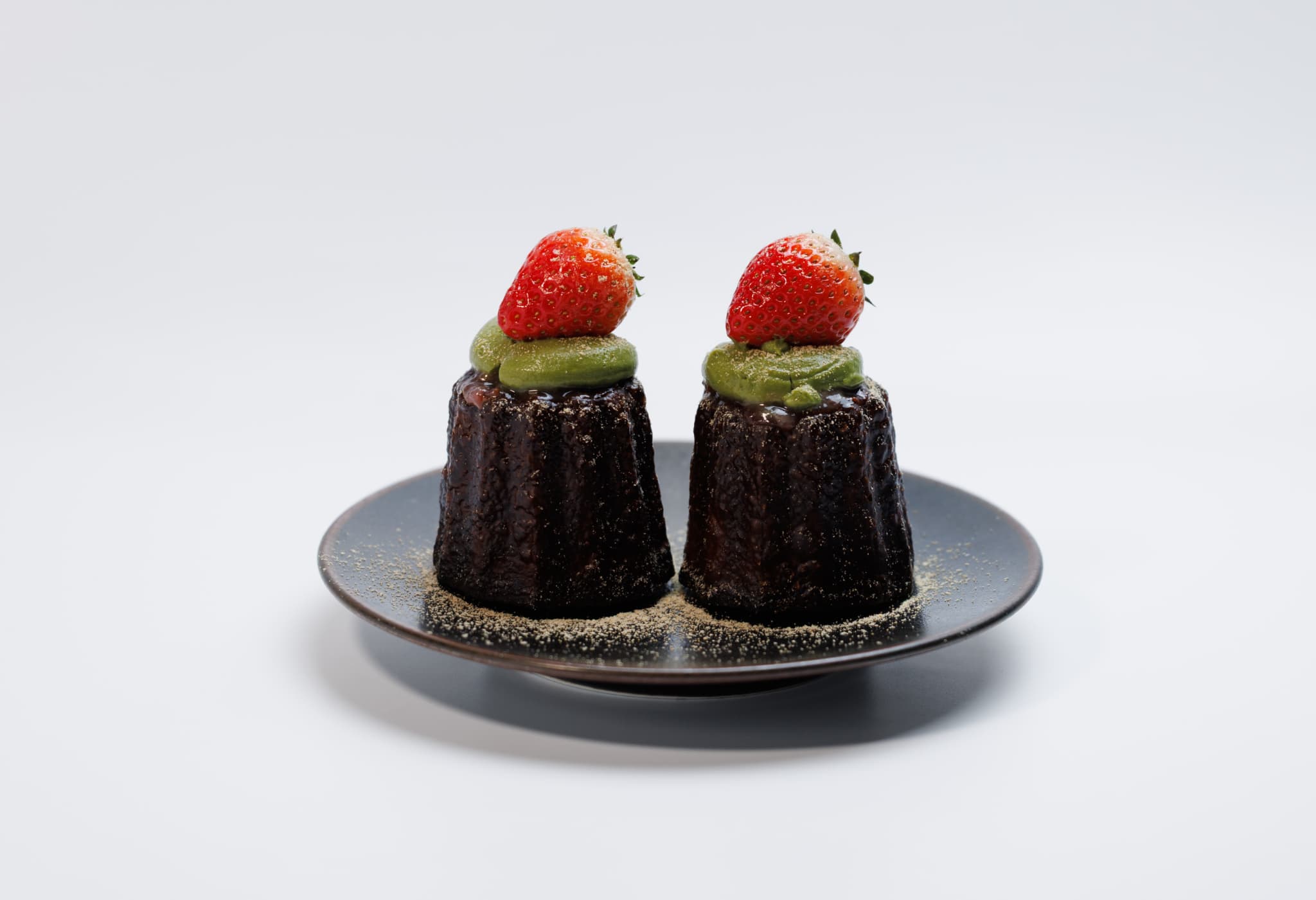 宇治抹茶クリームに、自家製の桜いちごソース&旬のいちごをトッピング。仕上げにきな粉を振りかけ、和テイストのカヌレにアレンジしました。