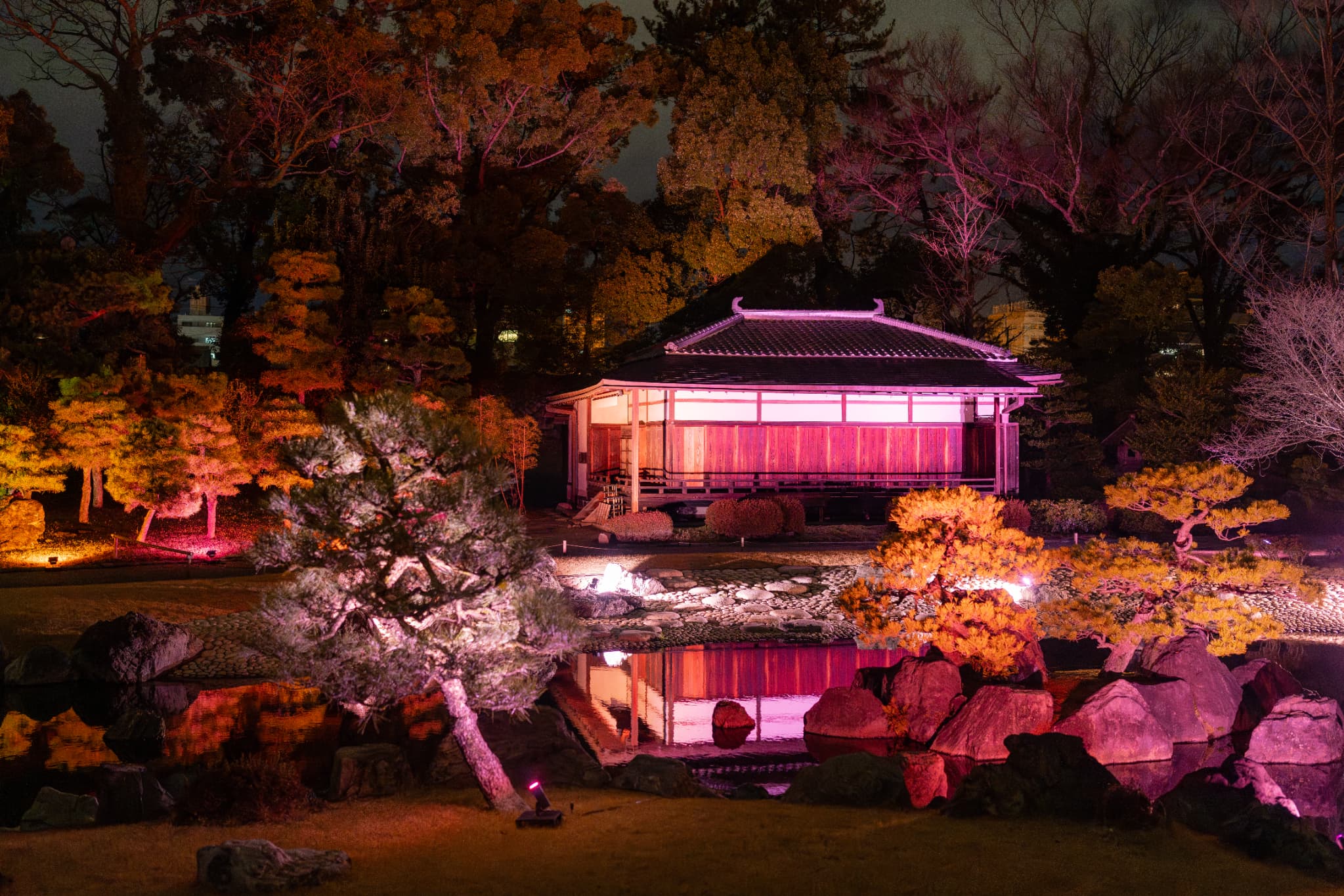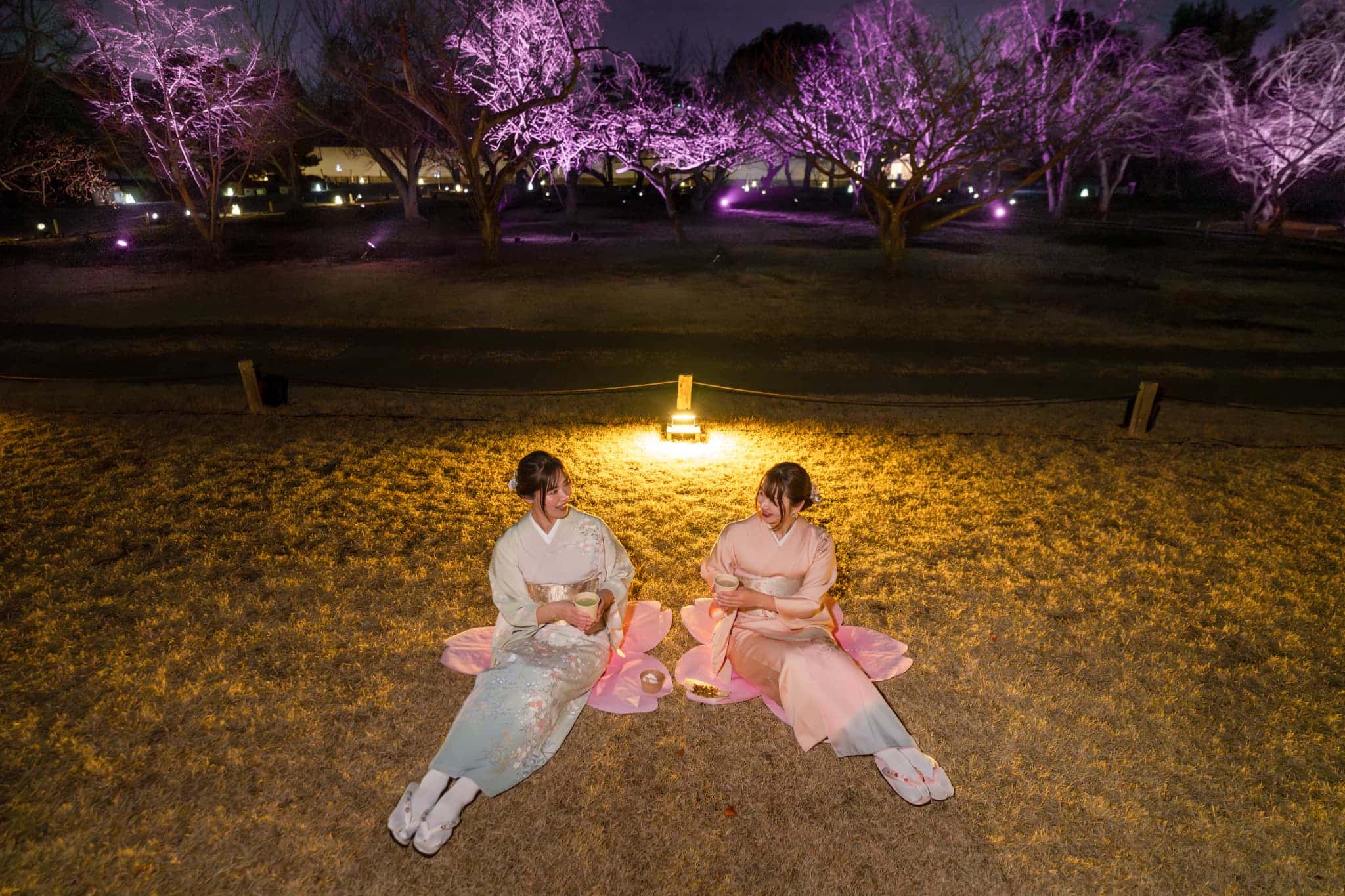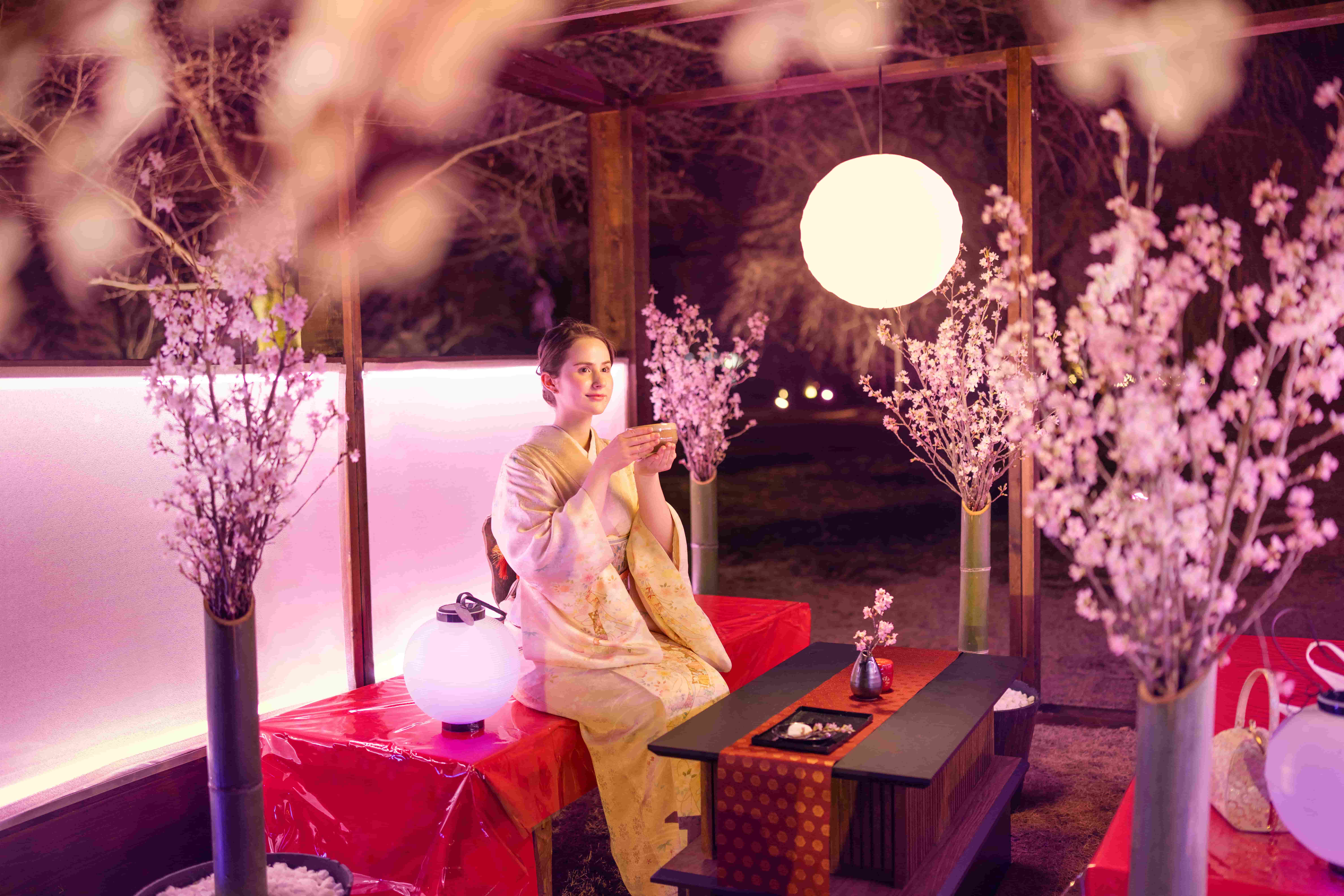 約50品種・300本の桜が咲き誇る二条城は、京都でも屈指の桜の名所。それぞれの品種が織りなす多彩な桜を、光の演出とともに幻想的に彩ります。飲食エリアでは春を感じる桜づくしのドリンク&フードに加え、小さなお子様連れでも安心して夜桜を楽しめる「桜ナイトピクニックエリア」や、大人がゆったりとお酒を楽しめる宴エリア『宵桜の庭』も登場します。また、「プレミアムお花見エリア」は3月28日(金)から4月6日(日)までの桜が見ごろを迎える10日間限定で実施し、二条城屈指の桜スポット「清流園」にて、芸舞妓さんとの交流やお座敷遊びを体験できます。