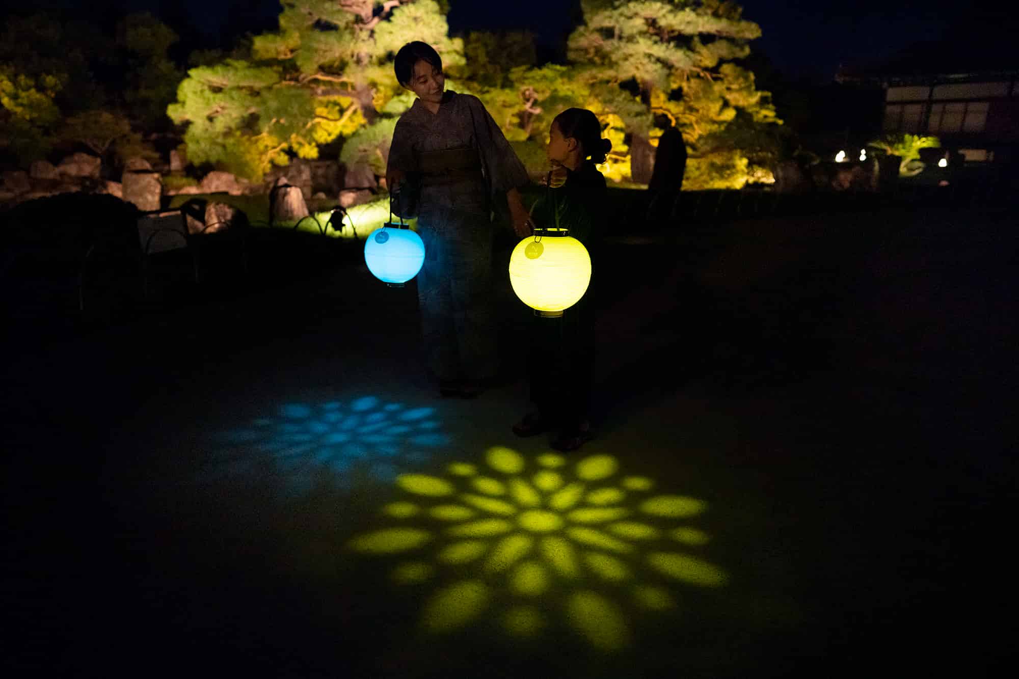 今回は「京都きものパスポート※」とのコラボレーションが決定。浴衣やきもので来場された方が「きものパスポート」を呈示すると、会場内で有償レンタルの「NAKEDディスタンス提灯®」を無料レンタルできる特典をご用意しました。京都の夏は日中の暑さが厳しいからこそ、涼しくなる夕方から夜に、二条城の散策をお楽しみください。